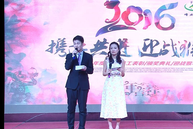 2016年2月4日峰业科环“2015年度表彰大会暨2016年迎春年会”在扬州江南一品阳光厅隆重举行,峰业同仁欢聚一堂,载歌载舞,共享峰业大家庭的喜悦和幸福。