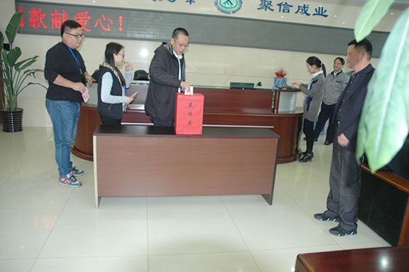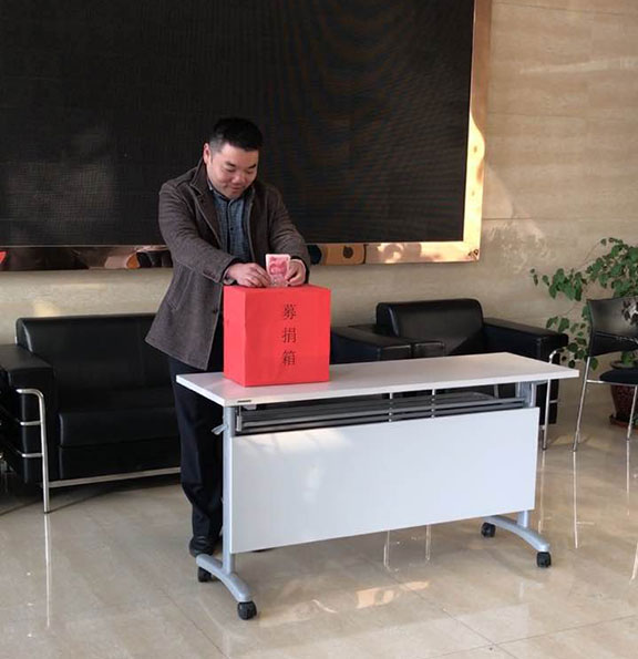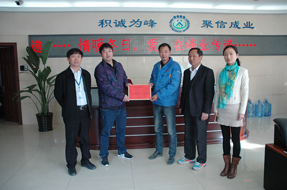 2016年12月 14 日上午10时,集团副董事长许峰、党支部副书记、工会主席王良海同志、发起人集团副总裁王斌同志、总裁办孙启静等领导将代表着集团全体员工的爱心款交到了刘峰手中,并鼓励他生活要坚强和乐观,祝愿他的爱人早日康复。公司的关怀与鼓励,令他十分感动 ,当场表达了对公司和全体同仁的感谢之情。